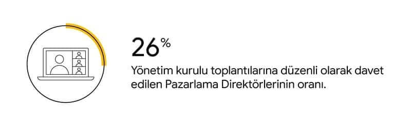 Ortalama olarak, Pazarlama Direktörleri üst düzey yönetimin görevde en kısa süre kalan üyeleri. Yönetim kurulları onların müthiş işler başarmasını istiyor. Onlardan müşteri şampiyonları, markanın en ön saftaki savunucuları, şirket içi ahlak ve kültür modelleri ve şirketin büyümesini sağlayan girişimlerin başı olmaları bekleniyor. Buna karşın, Deloitte tarafından yürütülen bir araştırmaya göre yönetim kurulu toplantılarına Pazarlama Direktörlerinin yalnızca %26’sı düzenli olarak davet ediliyor. Beklentiler yüksek, ancak erişim ve etki düşük.